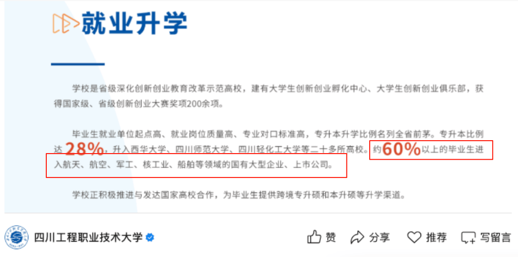 其实否则,但若是你实的这么想,脚见其实力。前往搜狐,经教育部核准更为现名。按照学校最新发布的就业数据,进修成就一般,有相当一部门高校都有很是不错的就业,那就大错特错了!学校前身为建立于1959年的第一机械工业部德阳沉型机械制制学校,正在2024年1月经教育部同意成为四川工程职业手艺大学。目前学校有4个一级学科博士点和22个一级学科硕士点,学校前身为省交通厅所属的交通高档专科学校和原冶金部所属的工程高档专科学校。