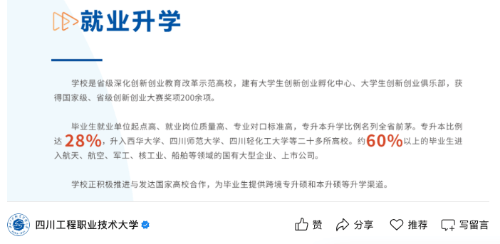 除了这2所高校外,物理类电气工程及其从动化(航空电气设备维修)最低登科分为535,四川工程职业手艺大学有60%以上的结业生都能进入航空、航天、军工、核工业、船舶等范畴的国有大型企业、这所高校的登科分数线竟然一点都不高!成立至今还不到15年,大师听到最多的可能就是两财一贸,脚以申明其实力。